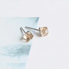 韩式925银饰 茶色水晶耳钉女时尚纯银气质耳环韩国情侣 简约个性