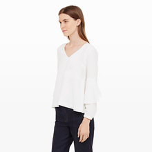 Dimple Hsu 很别致的真丝小衫柔美荷叶袖V领上衣 FW09761
