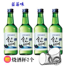 韩国烧酒 水果味烧酒 清酒 洋酒 好天好饮蓝莓味360ml*4瓶 赠2杯