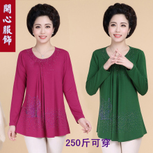 210斤中年胖妈妈装加肥加大码中老年人女装春装长袖T恤衫打底衫