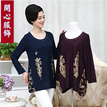 【清仓断码】中年胖妈妈装大码中老年人春装女装长袖针织T恤衫