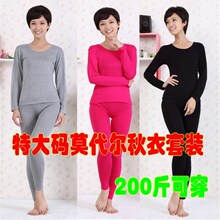 包邮大码莫代尔秋衣秋裤女 薄保暖套装胖MM基础款打底内衣200斤穿