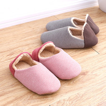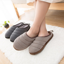 秋冬日系情侣男女家居软底木地板条纹保暖家居家用室内防滑棉拖鞋