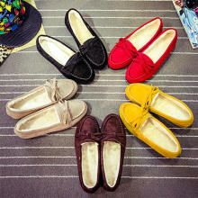 2016秋冬款浅口加绒单鞋女套脚圆头平底鞋懒人鞋加棉保暖豆豆鞋
