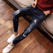 牛仔裤男破洞弹力直筒修身长裤修身型显瘦潮流日系复古百搭学生裤