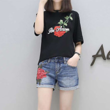 大码女装胖妹妹牛仔套装胖mm夏装2017新款短袖t恤热裤加肥200斤潮