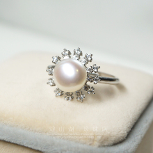 淀山湖珍珠店 极光无瑕饱满扁圆 天然淡水珍珠戒指 S925纯银活口
