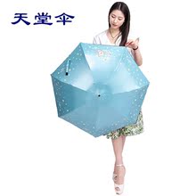 天堂伞三折轻便折叠太阳伞强防紫外线黑胶铅笔伞女防晒遮阳晴雨伞