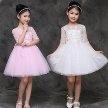 春季儿童礼服公主裙长袖女童礼服女童礼服婚纱裙钢琴演出服蓬蓬裙