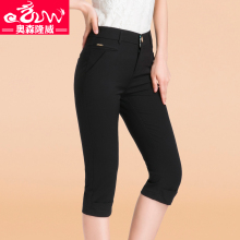 夏季薄款中年女裤妈妈装高腰七分裤女士休闲裤夏天大码弹力小脚裤