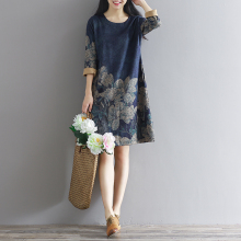2017秋冬女装新花色连衣裙棉麻长裙宽松文艺森林系女装打底裙