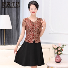 中老年女装夏装连衣裙短款2017新款婚礼妈妈装裙子短袖40-50岁潮