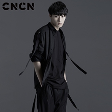 CNCN男装 青年长袖衬衫 黑色潮牌男士衬衫 春季休闲衬衣CNBC10205