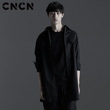 CNCN男装 男士青年休闲服 中长款长袖衬衫黑色薄外套CNBX10607