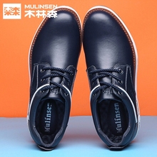 木林森男鞋春季潮鞋男士休闲鞋男真皮英伦皮鞋青年鞋子伐木工装鞋