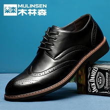 木林森春季男士布洛克雕花男鞋英伦商务休闲皮鞋男真皮系带潮鞋子