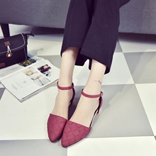 2016新款女鞋夏凉鞋性感中跟包头尖头舒适百搭简约一字扣女凉鞋子