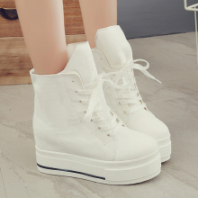 帆布鞋女高帮秋2016新款韩版休闲鞋系带厚底内增高女鞋学生单鞋潮