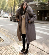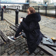 韩国代购2016潮流貉子真大毛领宽松中长款收腰连帽工装棉服外套女