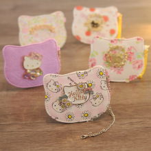 可爱hello kitty猫头花朵蝴蝶结零钱包 日本硬币包手拎链条小包包