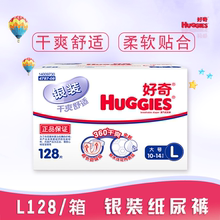 好奇银装干爽舒适婴儿纸尿裤大号L128片男女宝宝通用尿不湿 正品