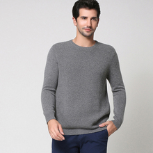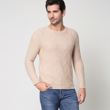 男士圆领羊绒衫时尚扭花针织衫弹力套头短款毛衣新款保暖打底衫
