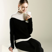 套头羊绒衫女短款2016新款拼色自带领针织衫打底修身毛衣双十一