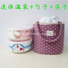 陶瓷保鲜碗骨瓷三件套带盖保温袋微波炉便当盒泡面碗