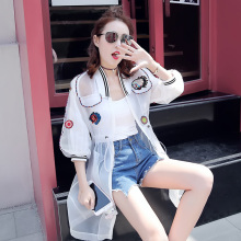 中长款防晒服女装夏季新款韩版中袖立领绣花防晒衣服棒球服薄外套