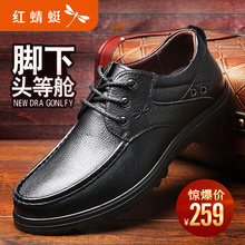 红蜻蜓男鞋 休闲皮鞋春季简约男士商务真皮正品系带软底单鞋子