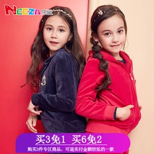 乐鲨童装女童长袖套装天鹅绒春款套装中大童运动两件套