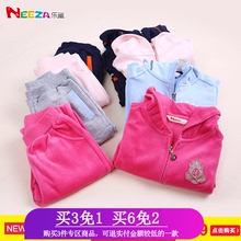 乐鲨儿童运动套装女童套装中大童天鹅绒套装男童两件套