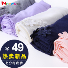 乐鲨童装女童打底裤中大童纯棉裤子儿童七分裤夏装女童蕾丝打底裤