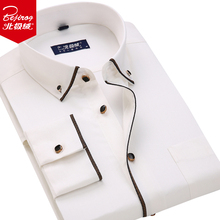 北极绒秋季男士长袖衬衫修身休闲青年男装白衬衣商务免烫纯色寸衫