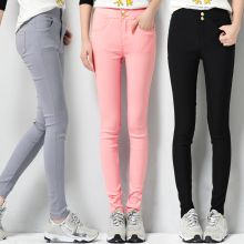 大码秋季女士外穿高腰糖果色紧身显瘦打底裤女弹力修身小脚裤长裤