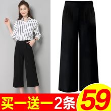 高腰阔腿裤女夏季2017新款宽松显瘦直筒九分裤雪纺休闲裤黑色裤子