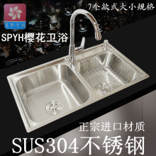 樱花洗碗池洗菜盆SUS304不锈钢加厚水斗厨房水槽双盆大双槽子母槽