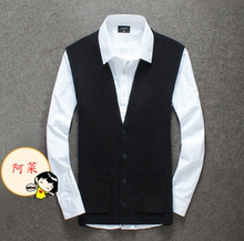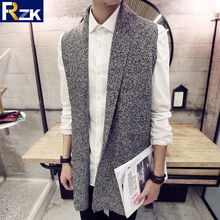 RZK春装男士开衫针织衫韩版英伦中长款无袖马甲毛衣坎肩外套男装