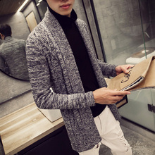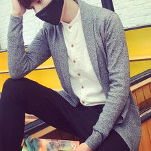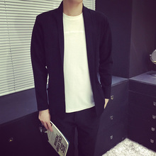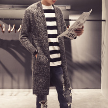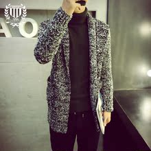 秋季新品男士针织开衫加厚外套韩版宽松针织风衣中长款修身毛衣男