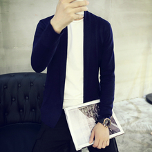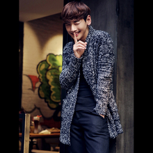 柳谛2015秋冬季日韩版加厚毛衣服男士修身中长款开衫针织衫潮外套