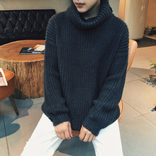 冬季套头男士粗线毛衣高领宽松韩版潮带领针织衫加厚学生青年外套