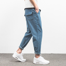 春潮男士牛仔裤长裤韩版时尚宽松哈伦裤小脚裤男九分裤日系低裆裤
