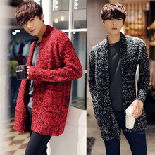 2015秋冬装男毛线风衣开衫毛衣外套韩版针织衫男英伦红色毛衣披风