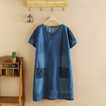 特大码女装连衣裙中长款显瘦牛仔上衣加大码夏装胖MM短袖牛仔裙子