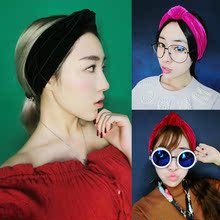 【周港胡同】针织绒面保暖发带 欧美简约头巾 韩国交叉发带 头带
