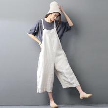可然夏日/品质舒适亚麻连体裤背带裤 文艺大码女装阔腿裤女九分裤