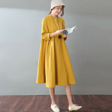 可然晨安/A字大摆裙 宽松棉麻连衣裙中长款衬衫裙 文艺范女装春夏