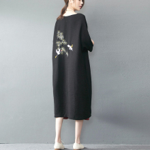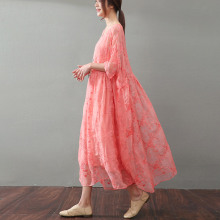可然 星期天/原创亚麻连衣裙女夏气质中长裙 文艺范宽松大码女装