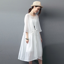 可然 清和/气质文艺宽松连衣裙 棉麻风大码女装套装裙 两件套夏