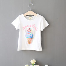 2017夏款新品品牌童装 女童冰淇淋亮片纯棉短袖t恤 中大童打底衫